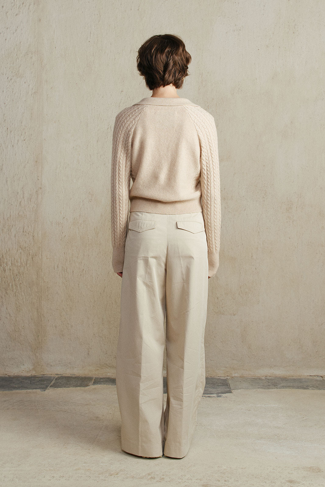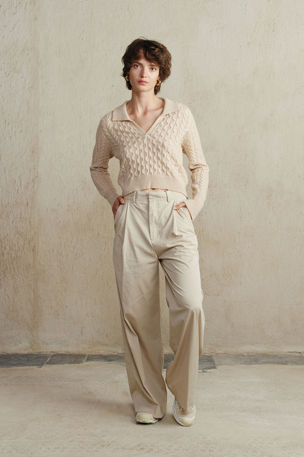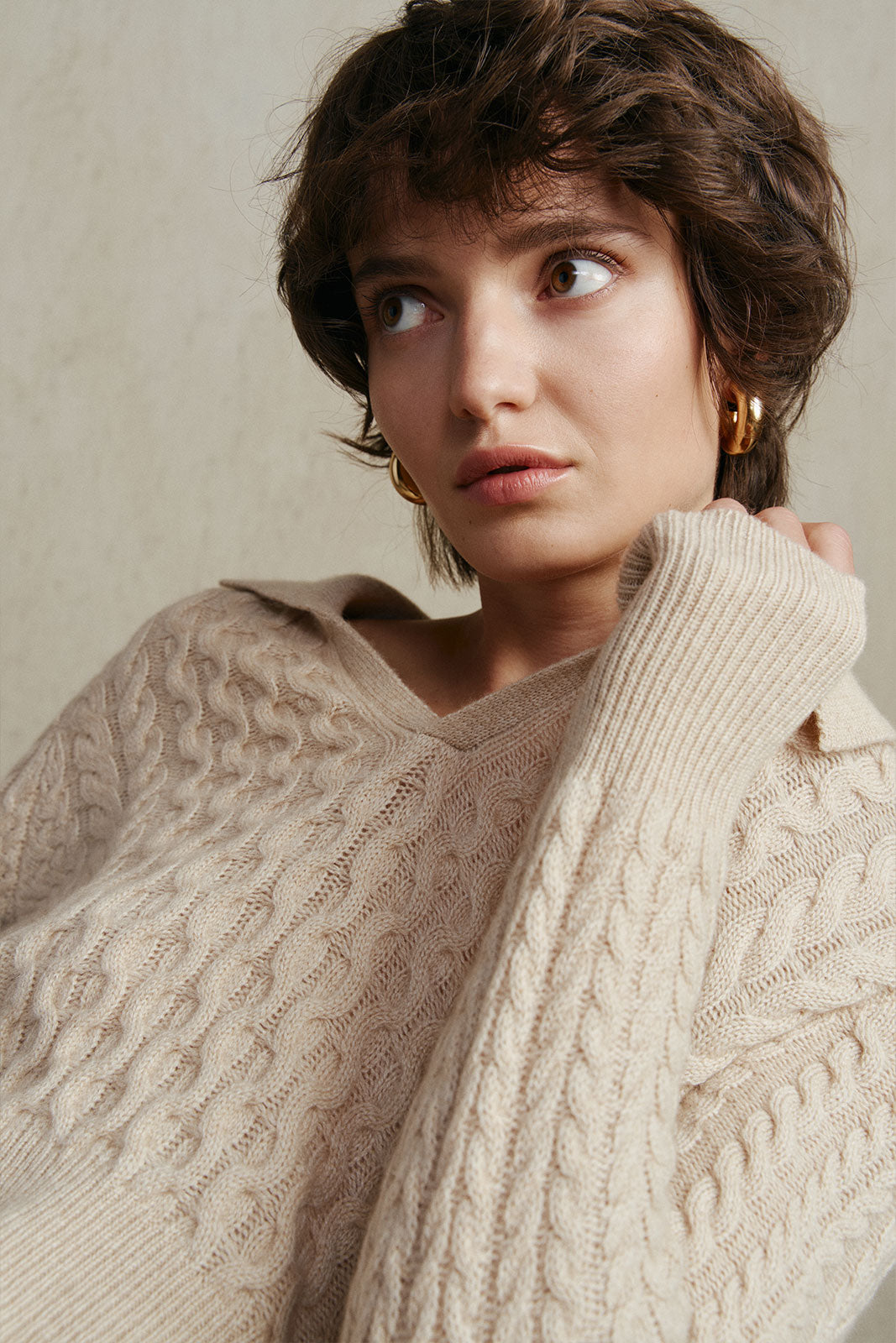ENNIS’s sweater is inspired by vintage sailor styles. Knitted from an organic cashmere, to maintain the natural softness of this precious fiber. The classic polo collar gives it a preppy feel. Wear yours with jeans or relaxed tailoring.