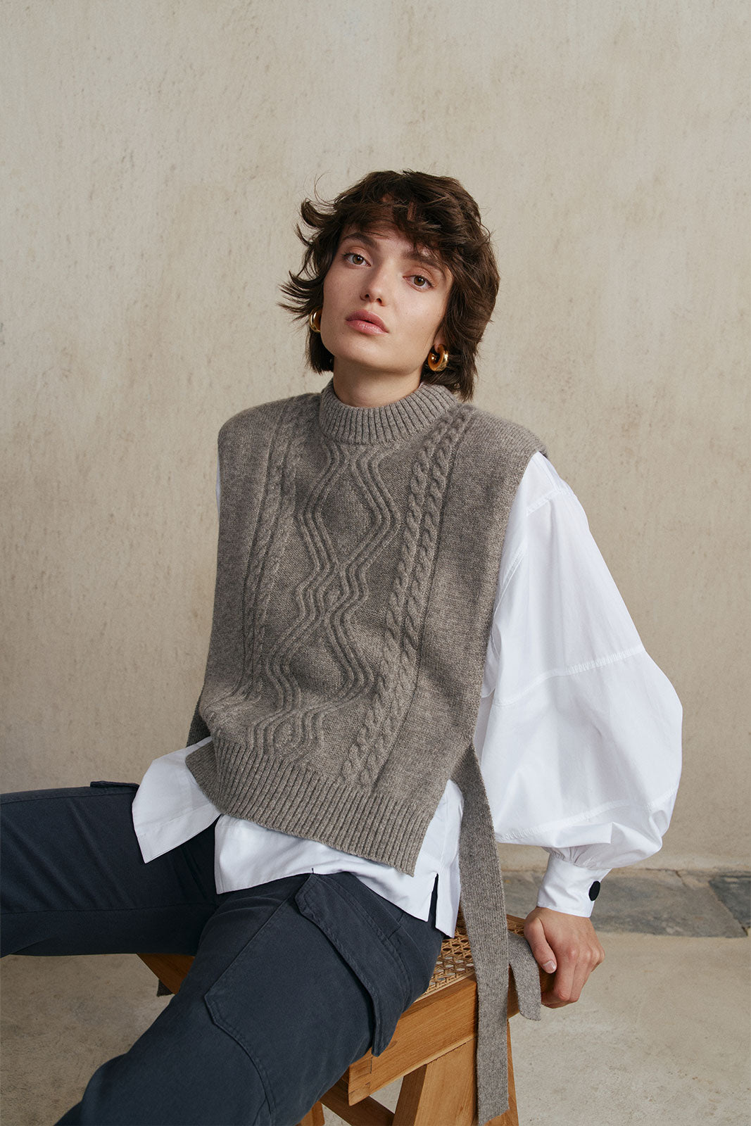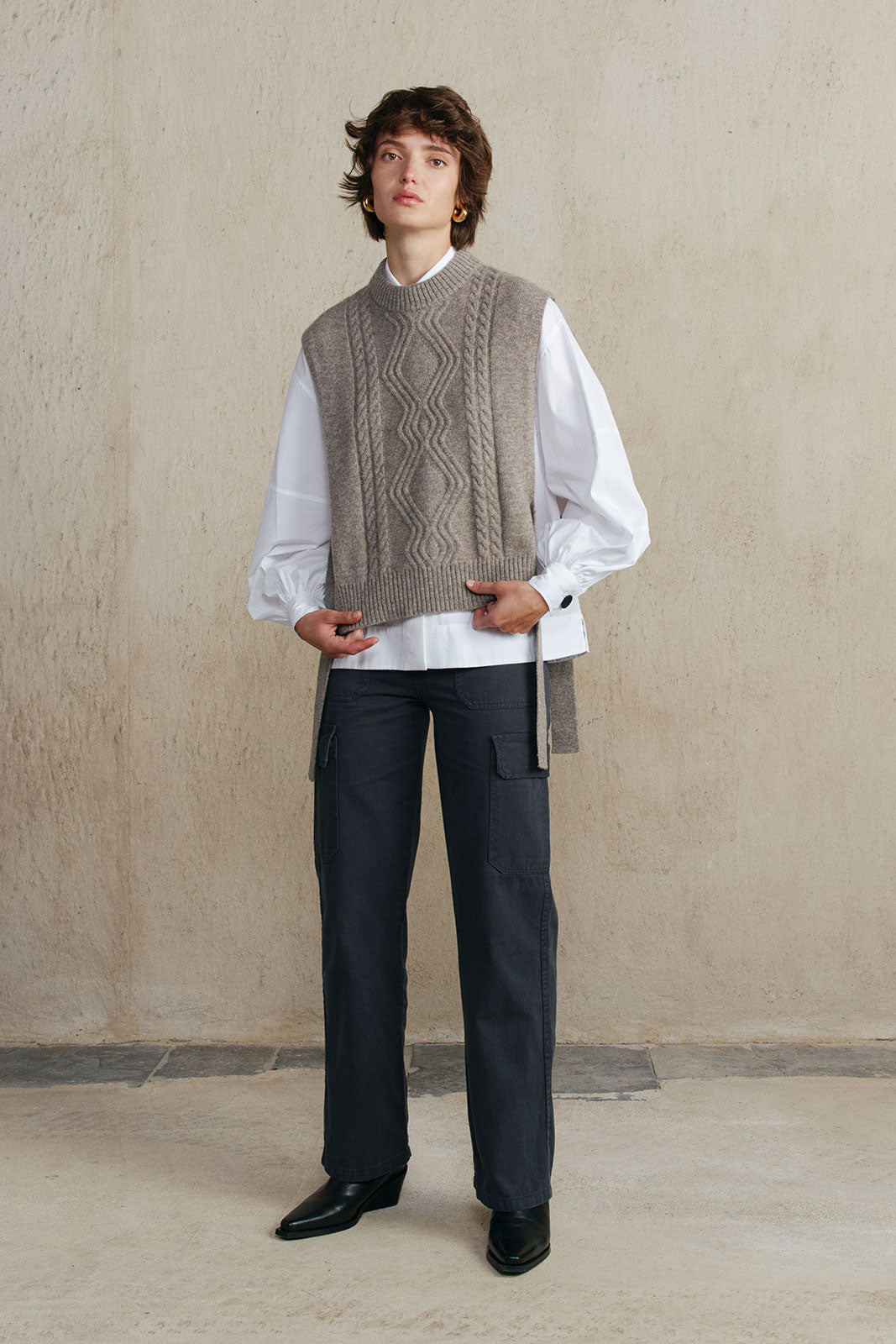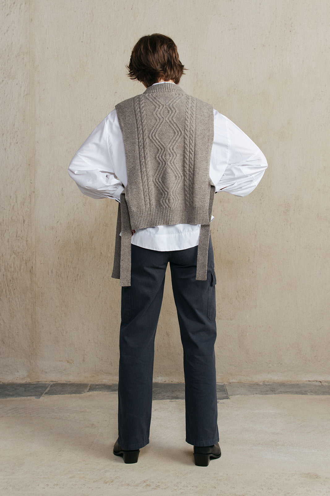 This piece is made from 100% fine yak down. The yarn is produced by nomadic herder families in Mongolia. We have collaborated with the Gobi Erdene, which is certified by Responsible Nomads, which ensures that the herders are properly remunerated, that the animals are cared for and that the soil is not degraded in order to preserve the ecosystem that supports our high quality standards.