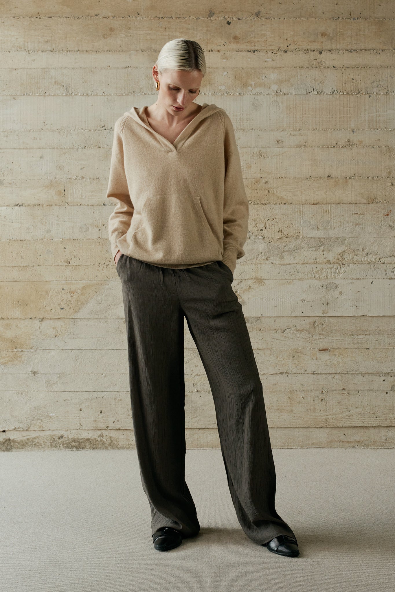 MANHATTAN, a hymn to sustainability, enfolds you in its embrace of 100% sustainable cashmere. Its relaxed fit and wide hood invite you to wander through urban landscapes, while braided patterns whisper tales of metropolitan dreams.