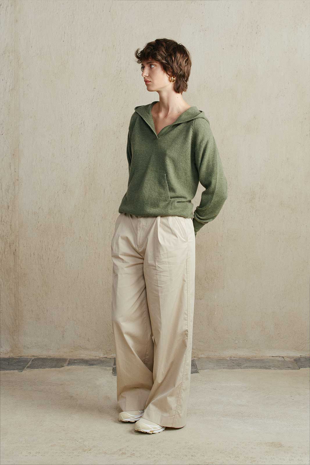 MANHATTAN, a hymn to sustainability, enfolds you in its embrace of 100% sustainable cashmere. Its relaxed fit and wide hood invite you to wander through urban landscapes, while braided patterns whisper tales of metropolitan dreams.