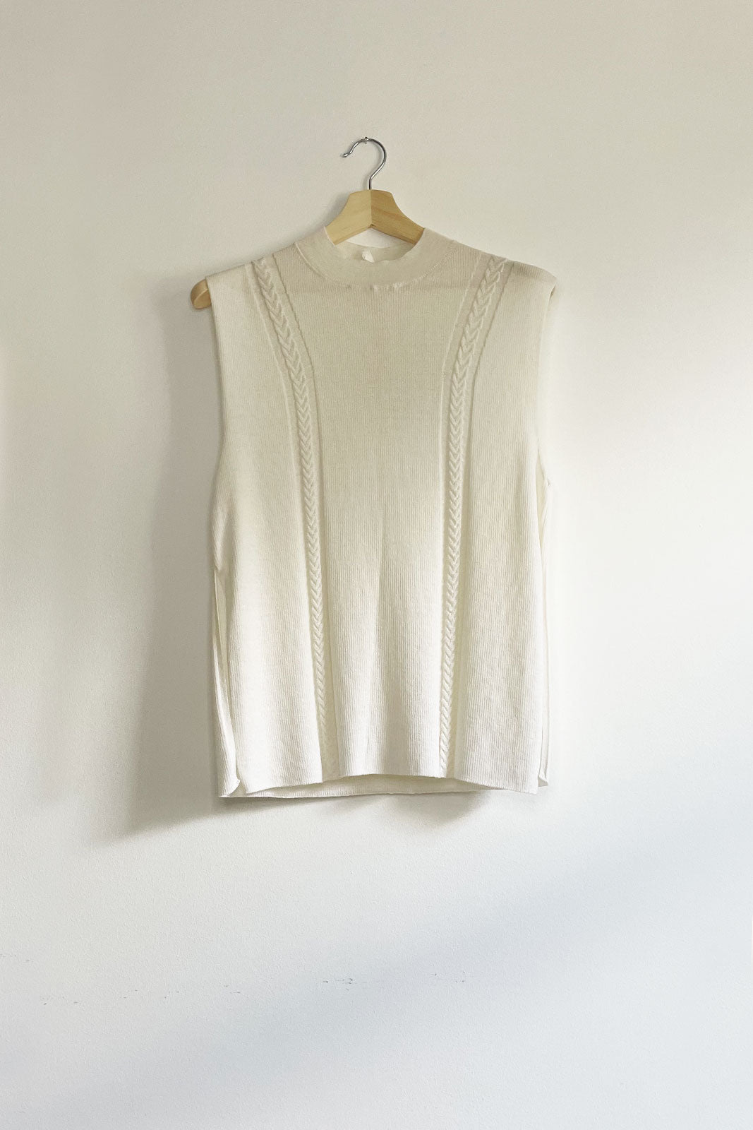 Sleeveless top, with side splits.