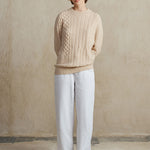 ARAN’s sweater transcends seasonal trends but is filled with elegant personality. This sweater is spun from an organic cashmere that's cable-knitted for an oversized fit. Combine yours with jeans or relaxed pant.