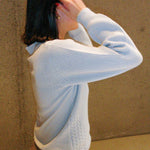 The LOLLAND sweater is an embodiment of timeless elegance, crafted from 100% cashmere. Inspired by the enduring beauty of the fishermen sweater, it features a delicate V-neckline that gracefully hints at the neckline. The sleeves, woven in a Half Cardigan rib, offer a textured contrast that enhances its effortless sophistication. Our signature braids, three on each side, trace the front, adding a refined touch to this relaxed, straight-cut silhouette. Slightly thicker yet light, this piece is perfect for welcoming the spring season — offering warmth without weight.