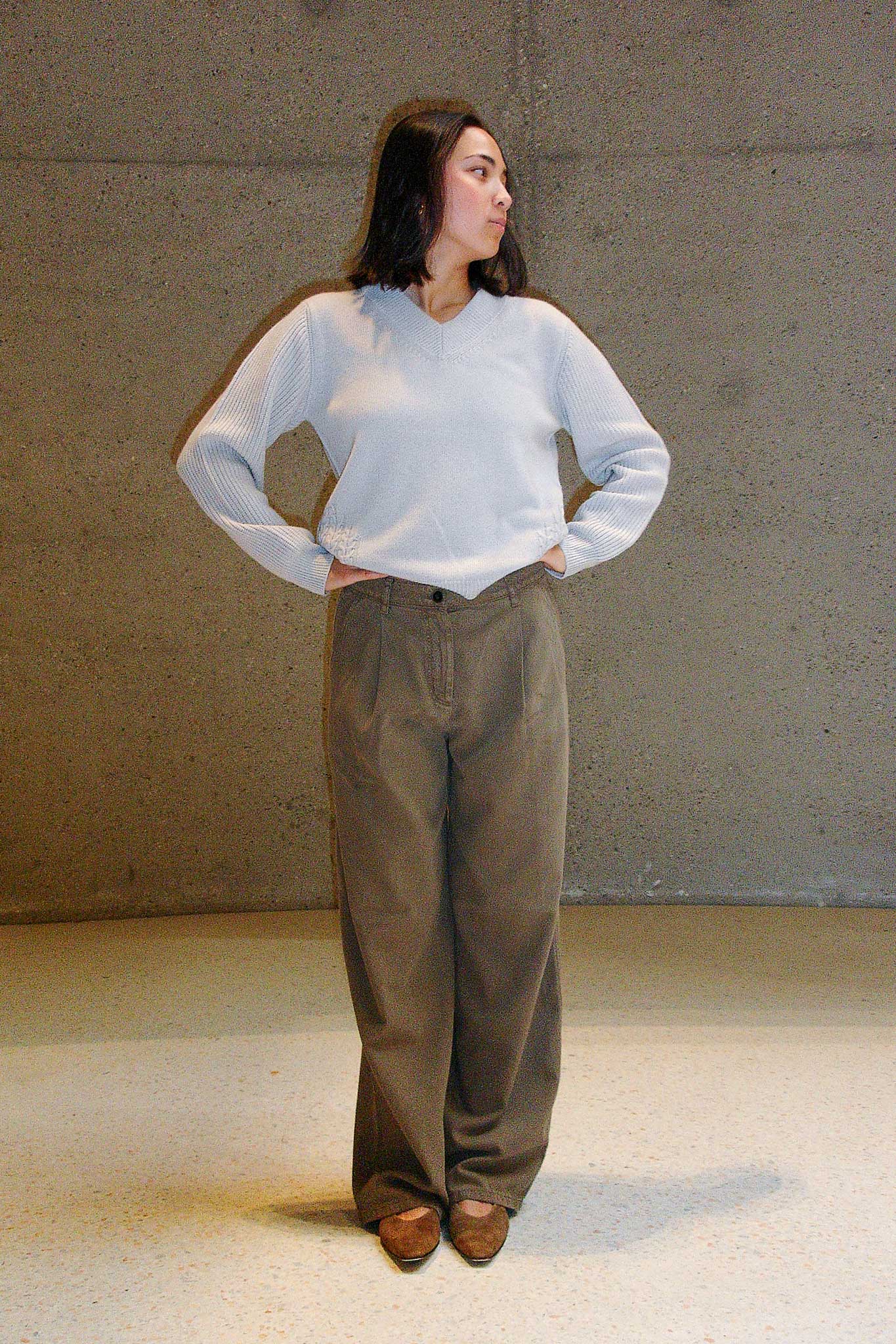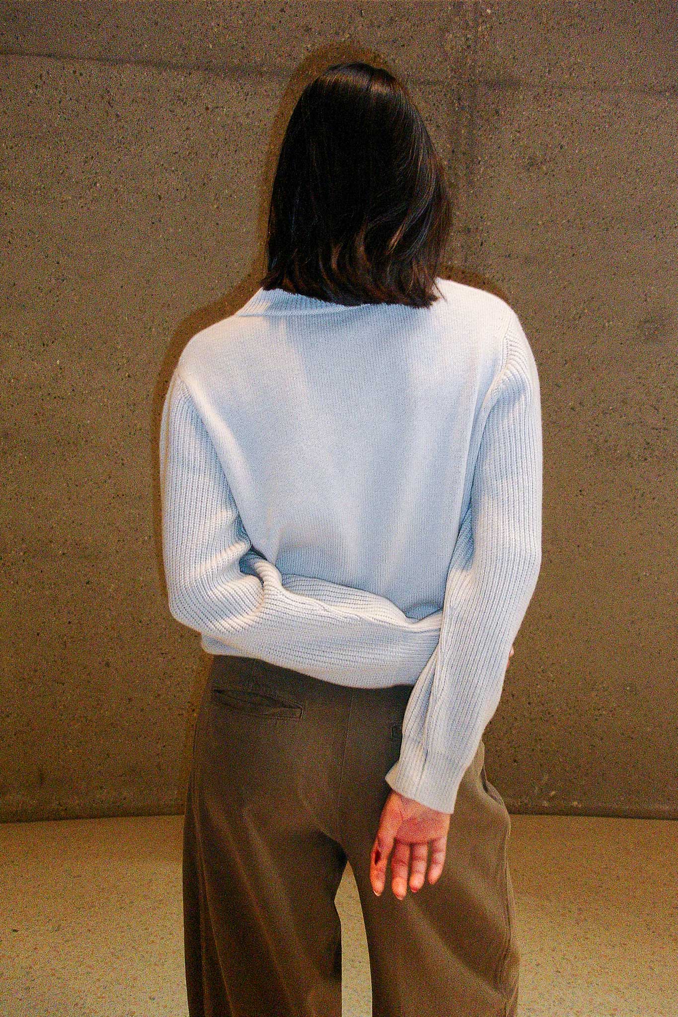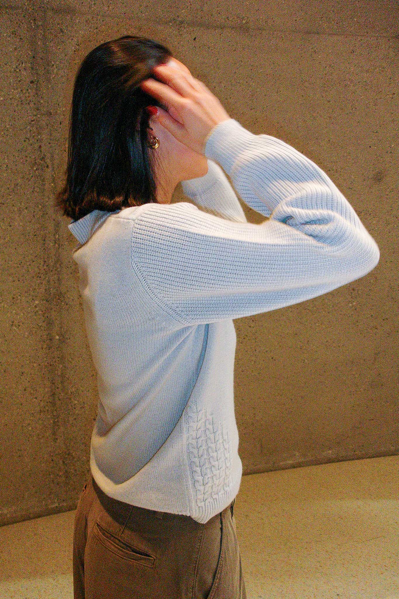 The LOLLAND sweater is an embodiment of timeless elegance, crafted from 100% cashmere. Inspired by the enduring beauty of the fishermen sweater, it features a delicate V-neckline that gracefully hints at the neckline. The sleeves, woven in a Half Cardigan rib, offer a textured contrast that enhances its effortless sophistication. Our signature braids, three on each side, trace the front, adding a refined touch to this relaxed, straight-cut silhouette. Slightly thicker yet light, this piece is perfect for welcoming the spring season — offering warmth without weight.