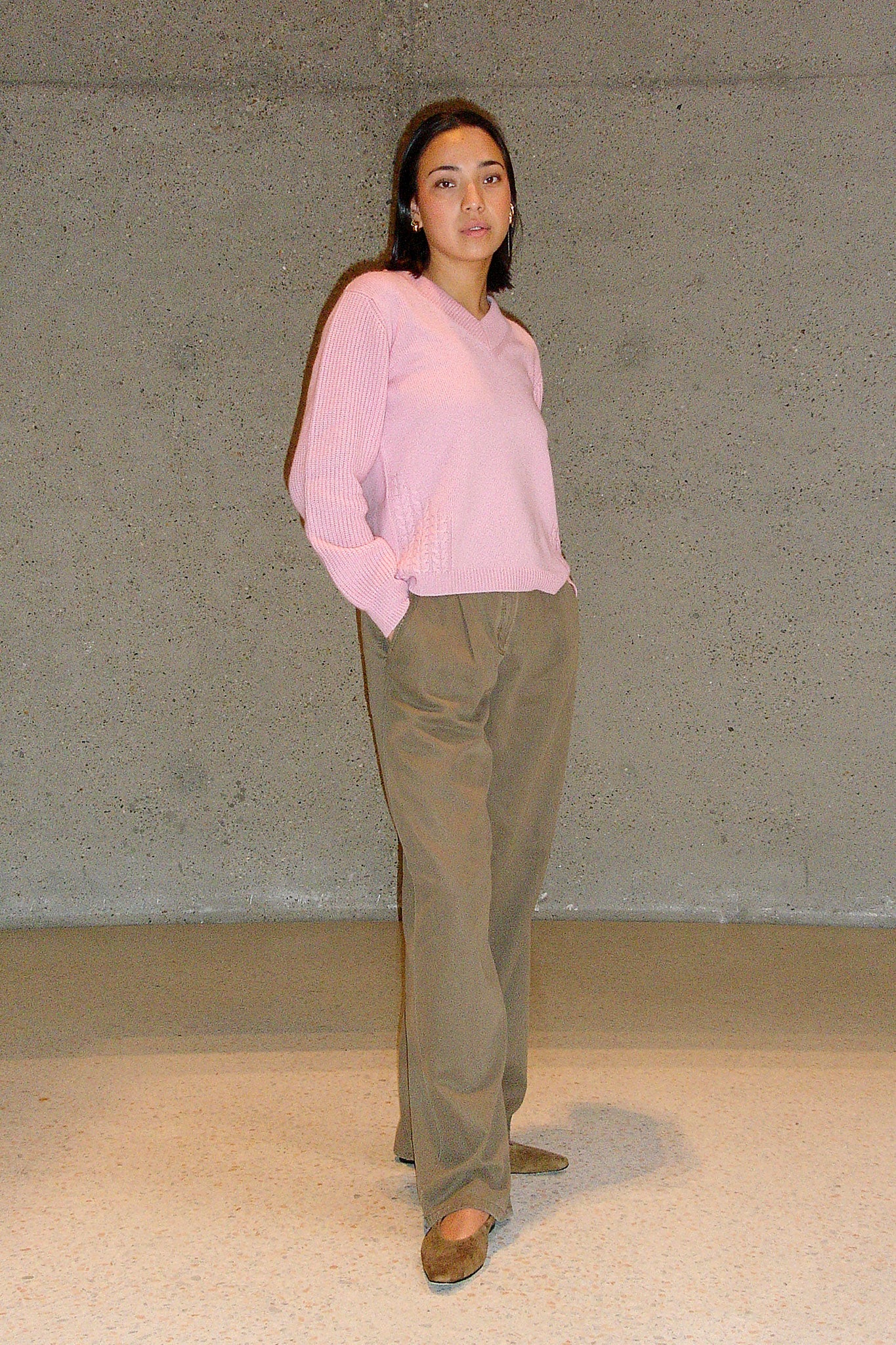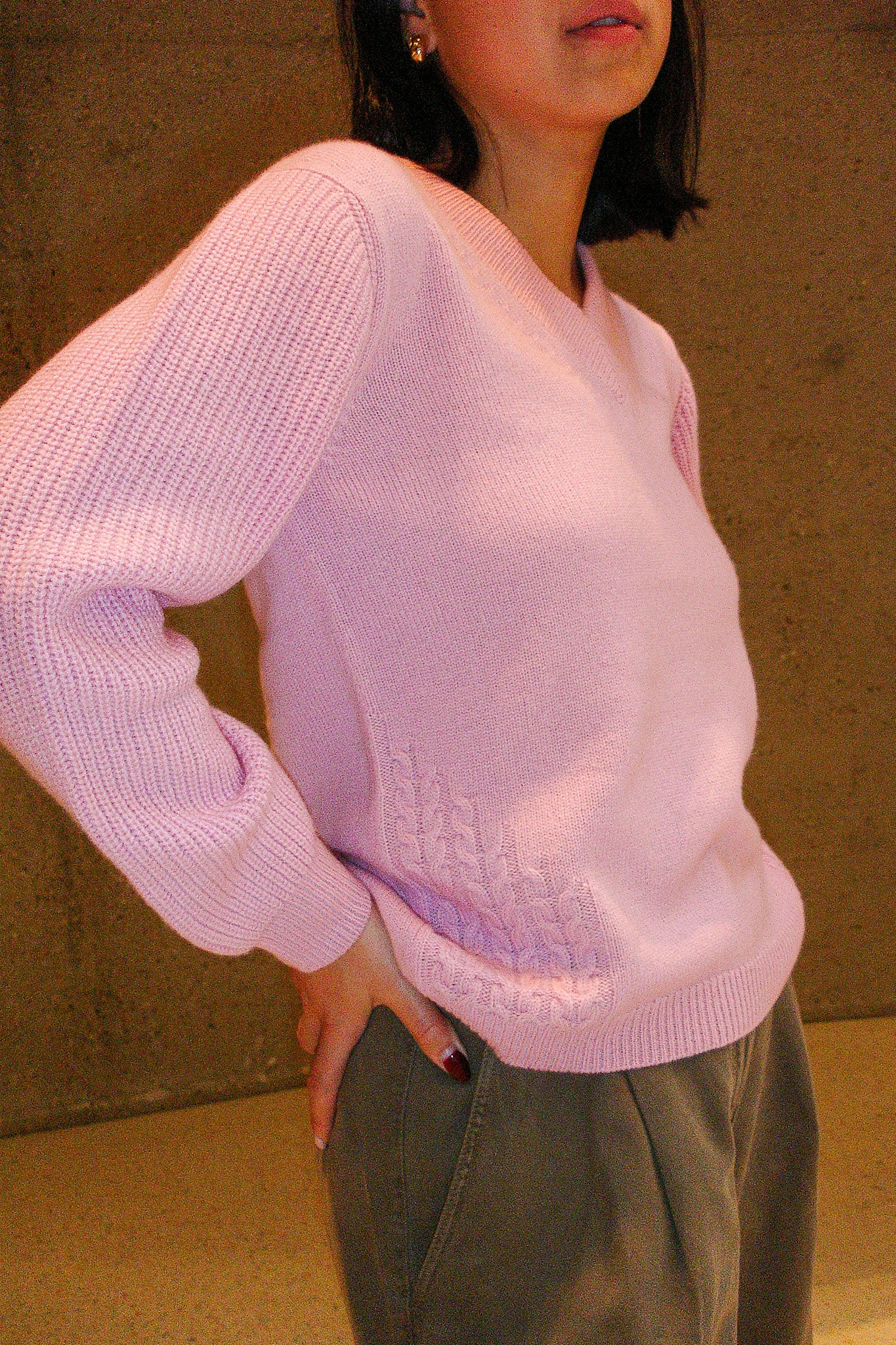 The LOLLAND sweater is an embodiment of timeless elegance, crafted from 100% cashmere. Inspired by the enduring beauty of the fishermen sweater, it features a delicate V-neckline that gracefully hints at the neckline. The sleeves, woven in a Half Cardigan rib, offer a textured contrast that enhances its effortless sophistication. Our signature braids, three on each side, trace the front, adding a refined touch to this relaxed, straight-cut silhouette. Slightly thicker yet light, this piece is perfect for welcoming the spring season — offering warmth without weight.