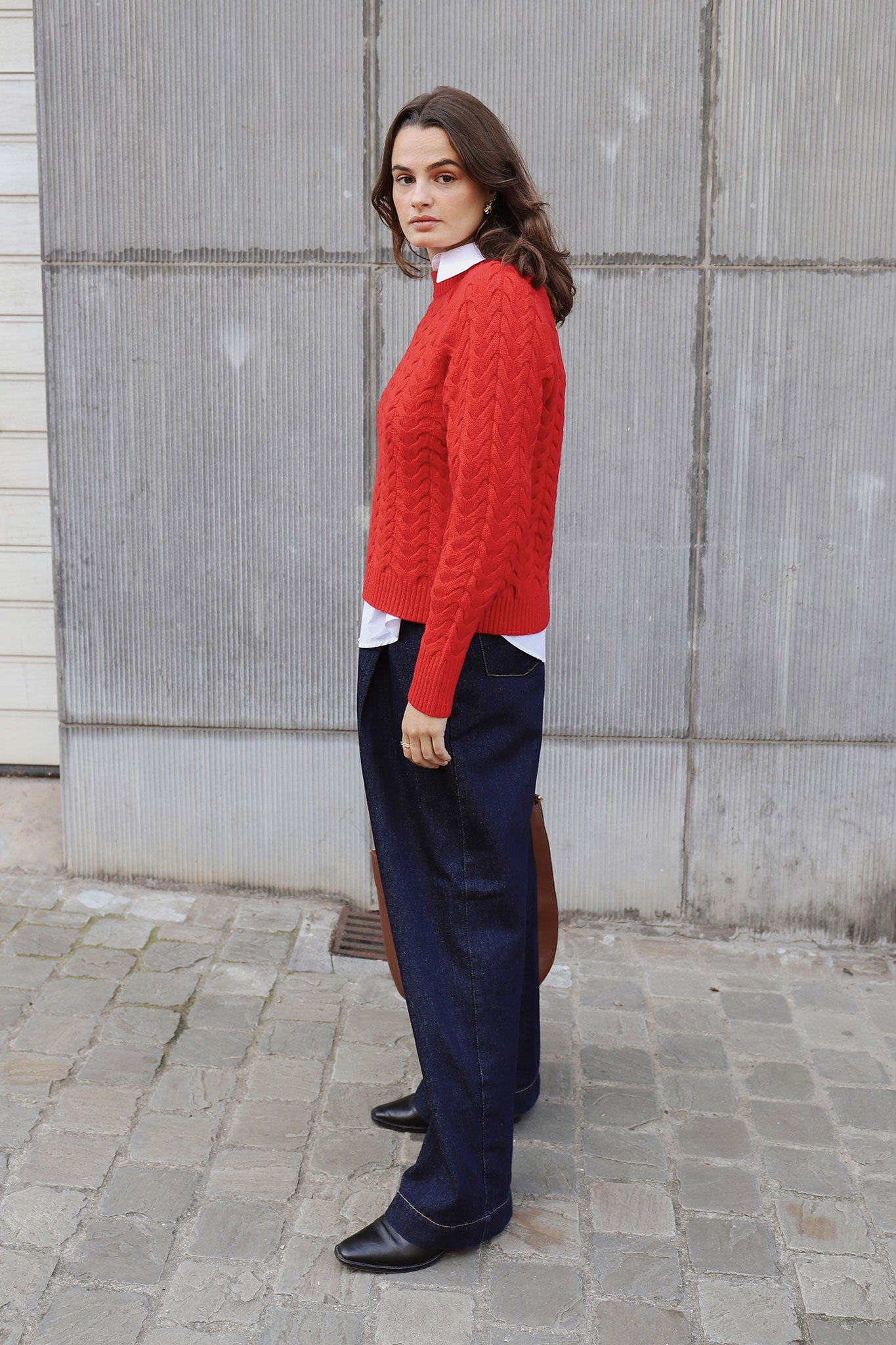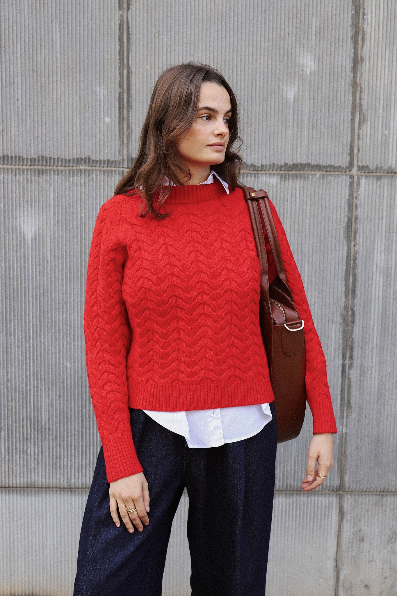 The Tribeca sweater isn't just about staying warm—it's about redefining winter dressing. Its sumptuous cashmere wrap brings an instant sense of coziness, while the intricate cable-knit design sets it apart with a timeless charm. Whether you're strolling through a snow-dusted city or heading to a weekend escape, Tribeca’s striking red shade and versatile fit make it the ideal companion for layering up in style. Bold, warm, and endlessly wearable, it’s the piece you'll reach for whenever the temperatures drop.